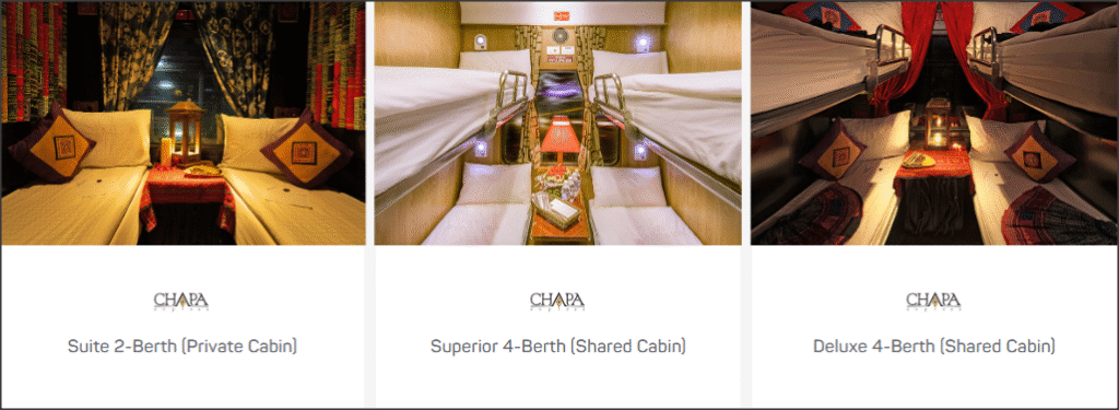 ค่าโดยสาร Deluxe 4-Berth (Shared cabin) | สามารถทำได้ โดยมีการเก็บค่าธรรมเนียม |